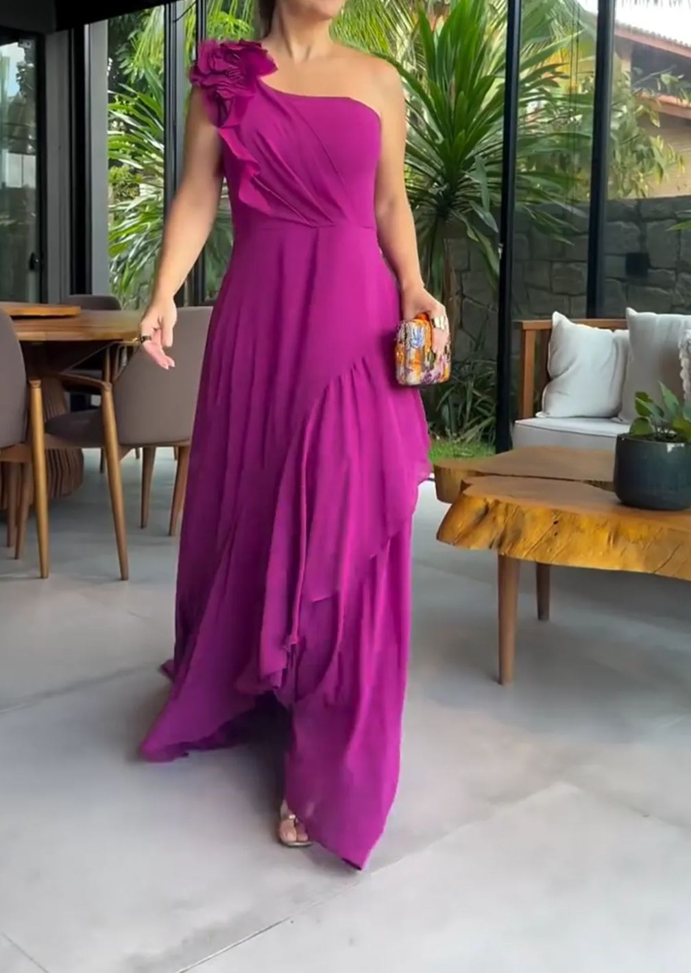Elegant One-Shoulder Layered Gown