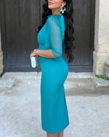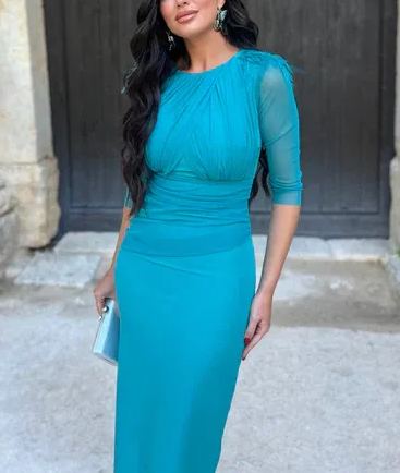 Este vestido de invitada es muy especial, su drapeado lateral favorece la silueta y el detalle en la espalda te hará ser la envidia del resto de invitadas.