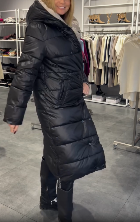 A versatile reversible longline hooded puffer coat offering two distinct solid finishes in one piece—ideal for doubling your cold-weather styling options. It features a hood for extra warmth, vertical-quilted padding (for even insulation distribution), side pockets (on both sides of the reversible design), and a full-zip closure (functional on either side). The extended length provides full-body coverage, while the lightweight construction balances cozy warmth with easy movement.